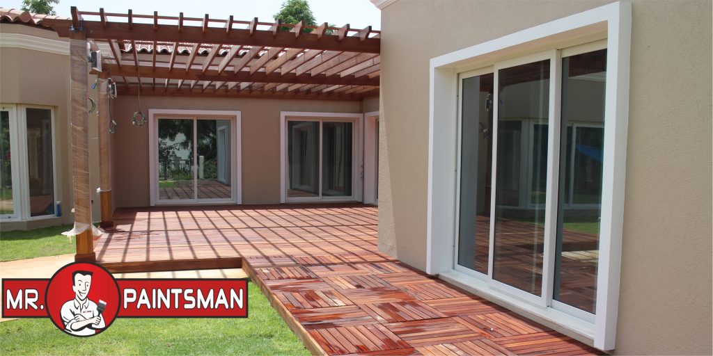 Hardwood Pergola and decking creates a cool spot, just outside the kitchen.